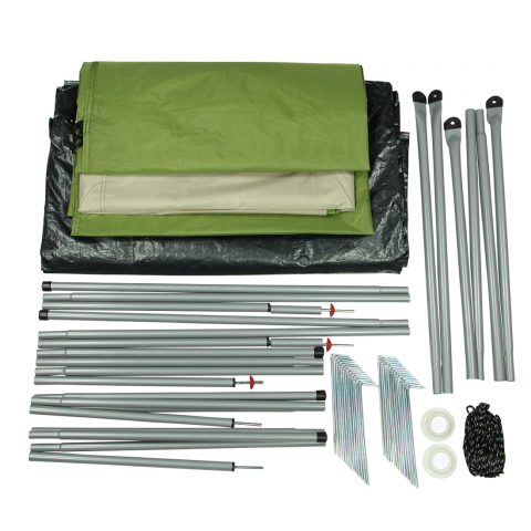 MaßeL. max. ca.: 470cm, B. max. ca.: 220cm, H. max. ca.: 170cm, Packmaß: Ø 20 x 65 Zentimeter im Packsack, Packmaß: (LxBxH) 67x22x20cm
