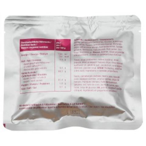 DetailsZutaten: Zucker, getrocknete Cranberries, Rosinen, Kokosnuss, getrocknete Papaya, getrocknete Ananas, Bananenchips, getrocknete Mango, Sonnenblumenöl, Speisegelatine, Speisesalz, Kokosnussöl, Rohrzucker, Dextrose, Glucosesirup, Weizen, Aromen, Säuerungsmittel (Zitronensäure) Zutaten in veränderlichen Anteilen Nährwerte pro 100 g: Brennwert in kJ/kcal: 1391/331 Fett 5,4 g, davon gesättigte Fettsäuren 4,4 g Kohlenhydrate 68,3 g, davon Zucker 61,4 g Protein 1,8 g Salz 0,1 g Inhalt: 50 g Haltbarkeit: 3 Jahre ab Produktionsdatum 03/2023