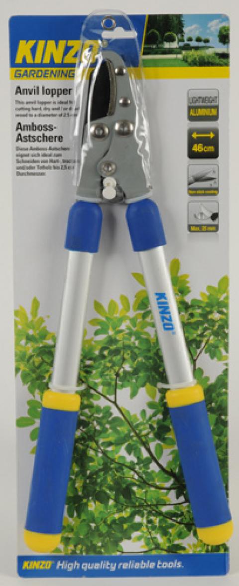 Aluminium Astschere, 46cm lang, Antihaftbeschichtung, für Äste bis zu 25mm, auf Blisterpackung, eignet sich ideal für das Schneiden von Hart- Trocken und Totholz, Premium Kinzo Profischere für Gartenarbeit.Softer Griff mit Gummi überzogen,lange Nutzungsdauer durch Aluminiumüberzug am Griffnicht rostend,vielseitig und einfach zu benutzen- Farbe: Gelb - Blau