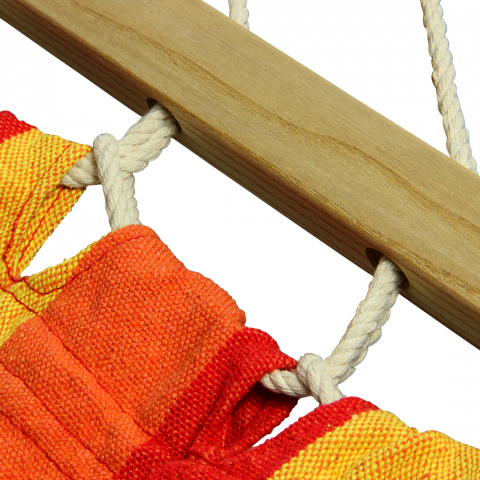 10T Rubellin Double - Doppel-Hängematte mit Spreiz-Stab und BefestigungssetEin reizvoller Blickfang in Ihrem Garten, aber eine Hängematte bietet doch deutlich mehr! Ursprünglich wurden Hängematten zum Schlafen benutzt, in einigen Ländern auch heute noch. Im westlichen Europa dienen sie jedoch hauptsächlich zur Entspannung und werden vorrangig im Garten, auf dem Balkon, der Terrasse, beim Camping oder im Urlaub genutzt.Die farbenfrohen Baumwolltücher haben einiges zu bieten. Lassen Sie sich wie ein Baby in seinem Schaukelbett sanft ins Land der Träume wiegen. Die leichten Schaukelbewegungen fördern die körperliche Regeneration und die entspannte Liegeposition ist zudem äußerst schonend für Ihren Rücken.Der Liegekomfort in einer Hängematte ist unschlagbar und dabei ist es egal ob Sie eine Tuchhängematte oder lieber eine Stabhängematte bevorzugen. Einfach hineinlegen und die Seele baumeln lassen.... entspannen, relaxen, chillen ist hier garantiert! Zudem ist eine Hängematte die kostengünstige und platzsparende Alternative zum Gartenstuhl oder Gartenliege.10T Hängematten werden in 3 Haupt-Farbtönen angeboten (Grün, Blau, Rot/Orange). Für jede Farbkombination stehen 4 Modelle zur Verfügung. 2 Spreizstock-Hängematten und 2 Tuchhängematten ohne Stab, jeweils in zwei verschiedenen Breiten. Die grünen Modelle heißen: Aventurin, Devellin, Prasiola und Amazona. Die blauen Modelle sind: Azurin, Paraiba, Tansani und Larimar. Die Modelle der Rot/Orange Linie lauten: Rubellin, Vanadina, Almandin und Balasso.Hängematte aus feinmaschiger Baumwolle und einer Grammatur von 320 g/m²Hergestellt wird die Hängematte aus hochwertigem Baumwoll-Leinen mit einem Quadratmeter-Gewicht von 320 Gramm. Dieses Material wird auch als Segeltuch bezeichnet.Das 100%ige Baumwollgewebe ist hautfreundlich und anschmiegsam, trotzdem aber wetterfest und farbecht. Das feinmaschige Webmaterial ist extrem belastbar und langlebig. Die Schnüre an den Enden der Hängematte sind ebenfalls aus Baumwolle. Jedes dieser Seile wird aus rund 150 einzelnen Baumwollfäden geflochten. Die Strapazierfähigkeit der Aufhängeseile ist somit entsprechend hoch. Die Aufhängeseile bilden am Ende eine stabile Schlaufe zum Aufhängen in einem Hängematten-Gestell, zur Befestigung an Bäumen oder Pfählen.Ein Befestigungsset bestehend aus 2 Seilen und 2 Metall-Haken mit Knebelverschluss fürs Seil wird gleich mitgeliefert.FarbgestaltungSchöne Farben treffen auf hervorragendes Material. Das Baumwollgewebe wurde im Streifenmuster Design gewebt. Neben der Bequemlichkeit soll sich die Hängematte auch in das allgemeine Gestaltungsbild der Umgebung einfügen. Die Hängematte wird daher in 3 Farbgebungen angeboten. Als Hauptfarben stehen Grün, Blau und Rot/Orange zur Auswahl.StabhängematteEin Spreizstab oder auch Spreizstock genannt, dient dazu die Hängematte immer offen zu halten und lädt somit zum entspannten Verweilen ein. Durch den Stab schaut die Hängematte optisch anspruchsvoller aus, weil immer die gesamte Fläche offen liegt und die Matte dadurch schöner und größer wirkt. Hängematten mit Spreizstab werden straffer gespannt und müssen deshalb weniger hoch aufgehängt werden.Schlaufe zum AufhängenAlle Spannschnüre laufen am Aufhängepunkt der Hängematte zusammen. In aufwendiger Handarbeit wird aus diesen Schnüren die Aufhängeschlaufe geflochten. Die geflochtene Schlaufe ist nicht nur schön anzusehen, zudem ist sie extrem robust und überträgt die auftretenden Kräfte.Set zur BefestigungDamit die Hängematte auch überall genutzt werden kann, wird das Befestigungsset gleich mitgeliefert. 2 Seile und 2 Haken aus Edelstahl müssen nur noch die passenden Bäume oder Pfähle finden und die ersehnte Entspannungsphase kann beginnen.
