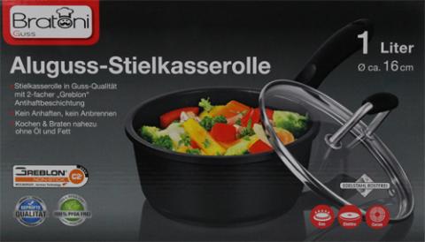 Bratoni -Stielkasserolle 16cm , Aluguss Topf mit Deckel