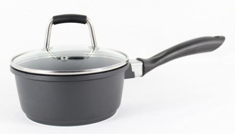1 Liter Fassungsvermögen, Stielkasserolle in Guss-Qualität mit 2facher Greblon Antihaftbeschichtung, 16cm Durchmesser, kein Anhaften - kein Anbrennen, Kochen und Braten nahezu ohne Öl und Fett, mit Glasdeckel, Spülmaschinengeeignet, robust langlebig und kratzunempfindlich, Backofengeeignet bis 170 Grad, Energiesparboden für optimale Wärmeverteilung, Cool-Touch-Griff